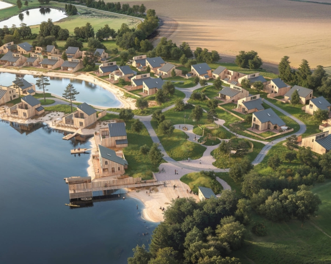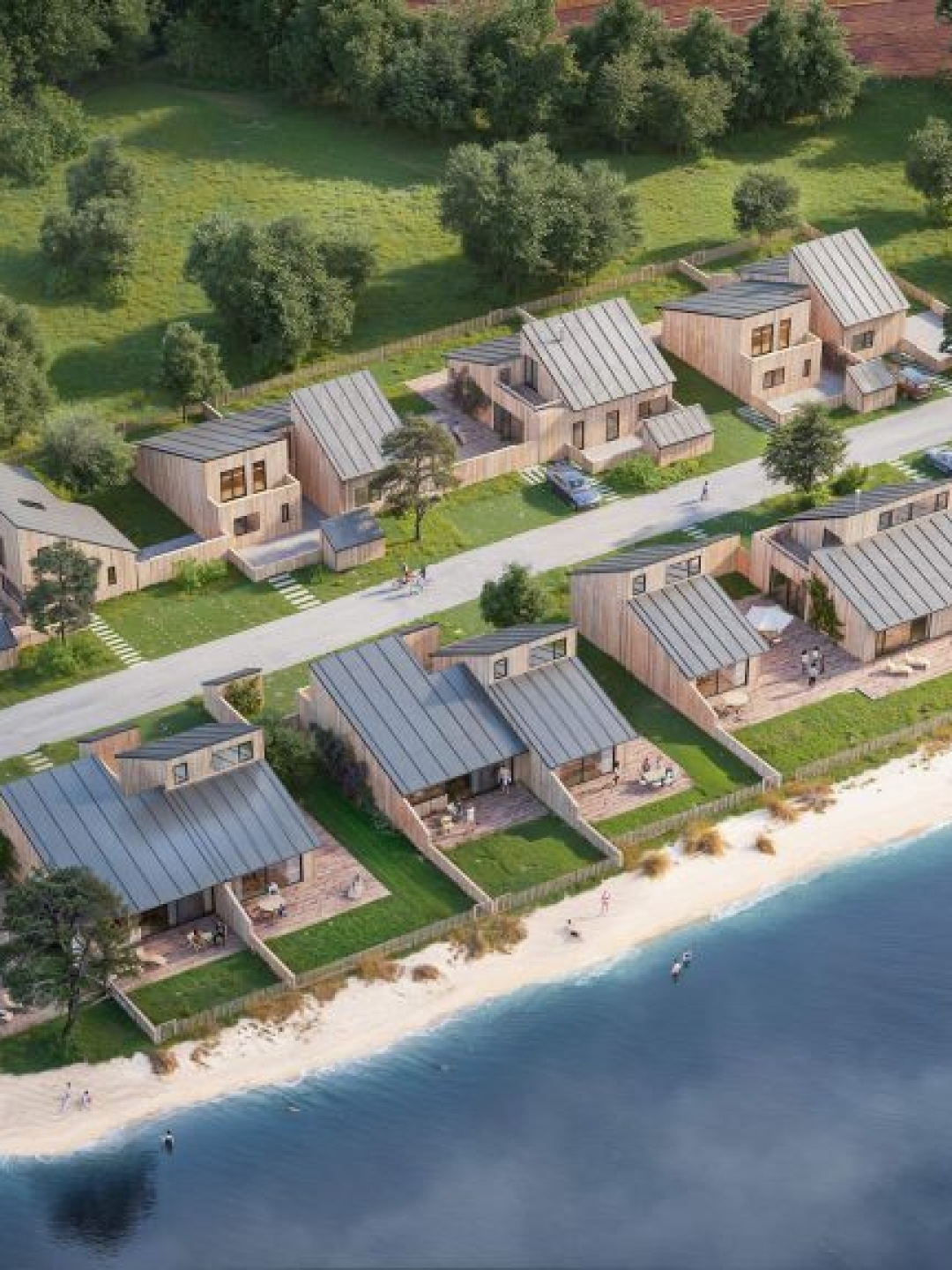 Marissa Lake Village wordt een resort met meer dan 500 huizen in Scandinavisch design. Vakantiehuizen van 69 tot 192 m² worden met gevoel voor de omringende natuur gebouwd en passen naadloos in het omliggende landschap. Elk huis beschikt over een eigen perceel – een groot deel daarvan met directe toegang tot het water. De 1e fase van het project, 50 vakantiewoningen voor particulieren, start. Wij hebben de opdracht ontvangen om de 25 grotere traditoneel gebouwde woningen te bouwen. De andere helft van de woningen is houtskeletbouw.